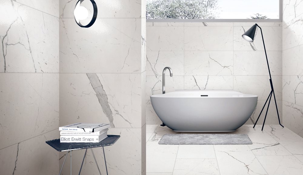 Pietra Statuario源自闻名世界的意大利卡拉拉采石场,承袭了卡拉拉石材质地坚硬、密度大的特性。浅灰色斜纹、疏密有度,与洁白通透的背景相互辉映,浅浅地宣扬着内在的石材基因,非常适合追求洁净和时尚的商用或家居空间。